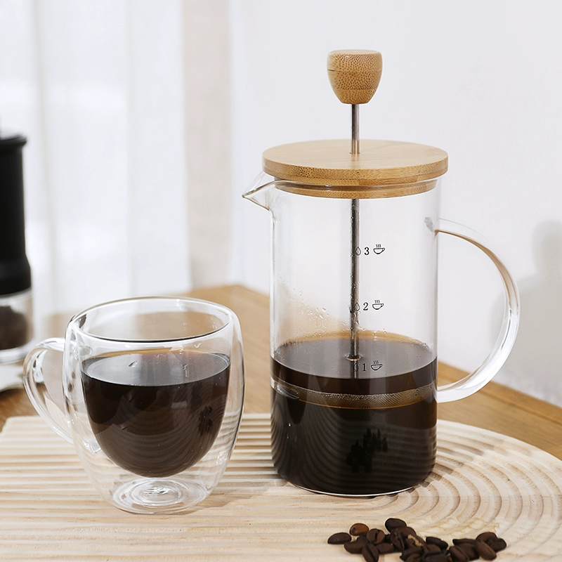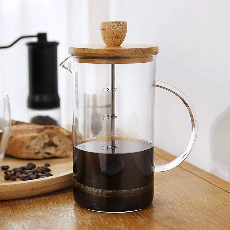 - A tampa de bambu natural e a alça do êmbolo trazem uma estética minimalista e ecológica.