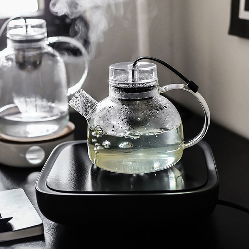 Este bule de vidro possui um filtro de aço inoxidável,este bule de vidro possui um filtro de aço inoxidável. Este bule foi engenhosamente projetado, fácil de limpar e não é fácil de esconder a sujeira.