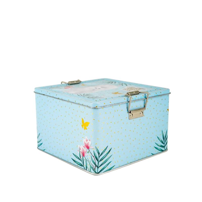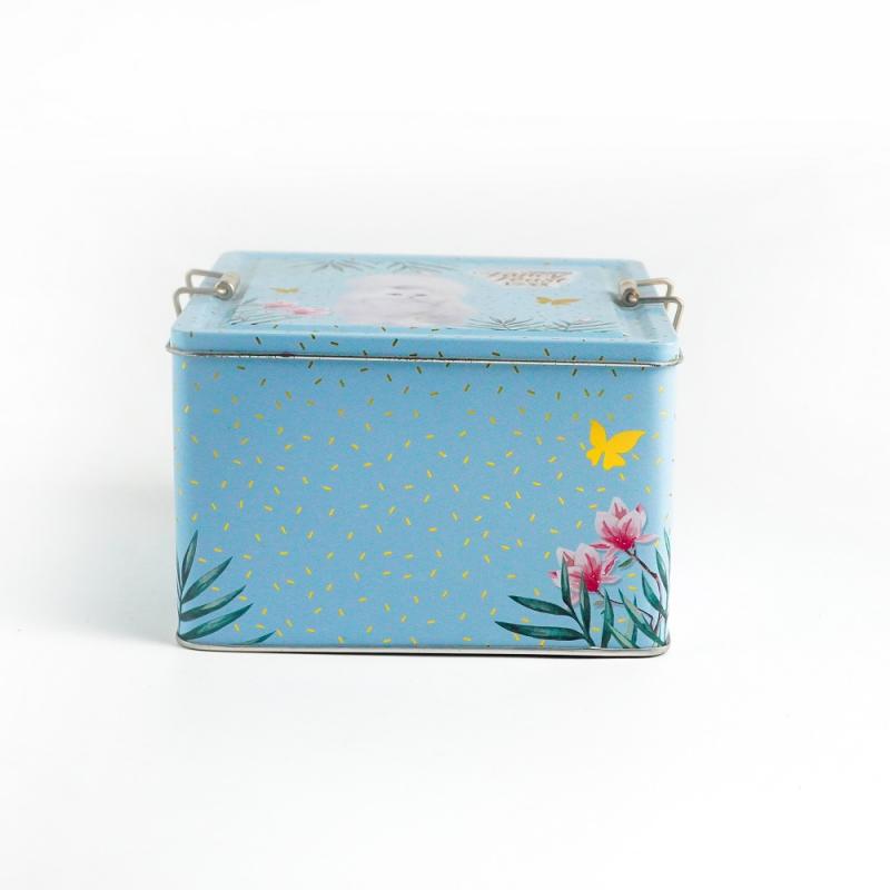 3. Caixa de lata de alta qualidade - A caixa metálica é feita de lata eletrolítica branca com verniz protetor food-safe na cor prata mate, plana e possui tampa escalonada. A caixa quadrada de metal tem aprox. 14,5*14,5*9,3cm.