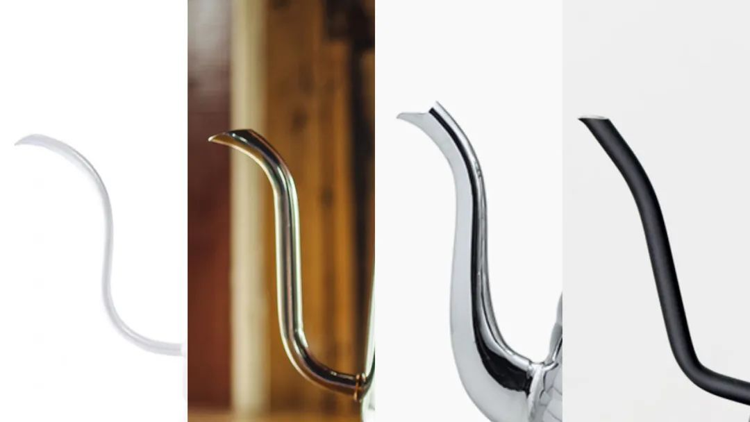Em segundo lugar, existem bicos planoscafeteiras portáteis, cujas aberturas tendem a ser paralelas ao plano horizontal. Sem o desenho de desvio da bica, é mais provável que a água que sai forme uma curva parabólica, o que requer mais prática para ser usada livremente.