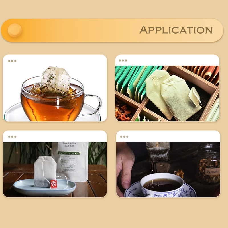 O papel de filtro em saquinhos de chá é aplicado no processo de embalagem em saquinhos de chá. Durante o processo, o papel de filtro do saquinho de chá será selado quando a temperatura da máquina de embalagem for superior a 135 graus Celsius.